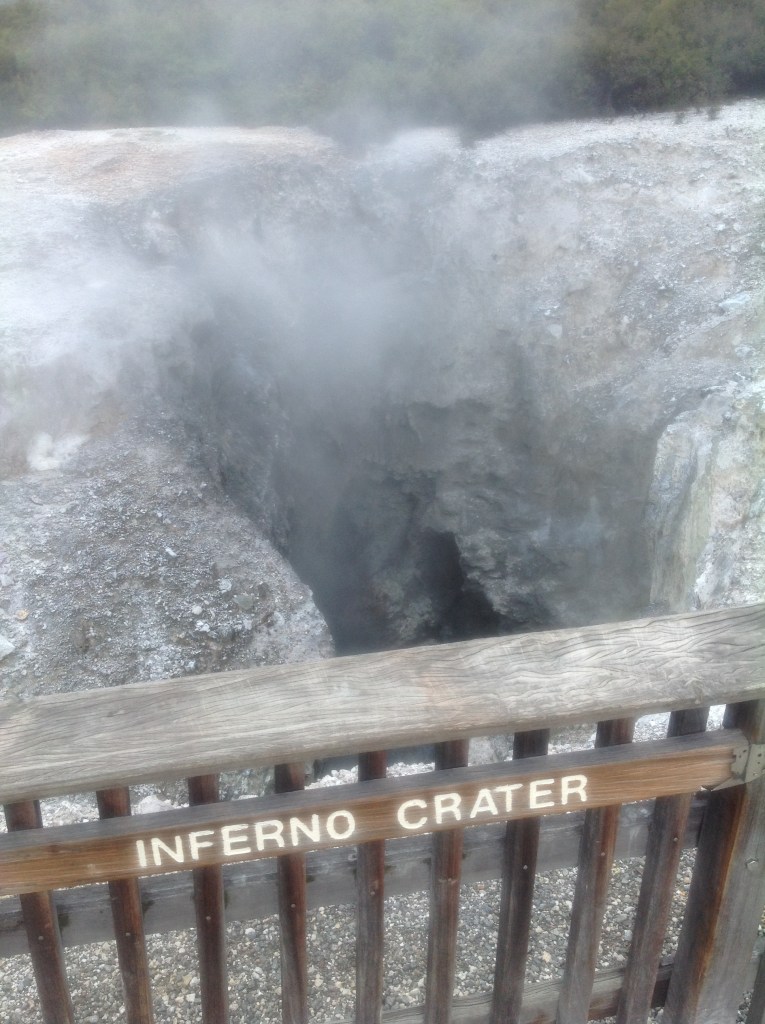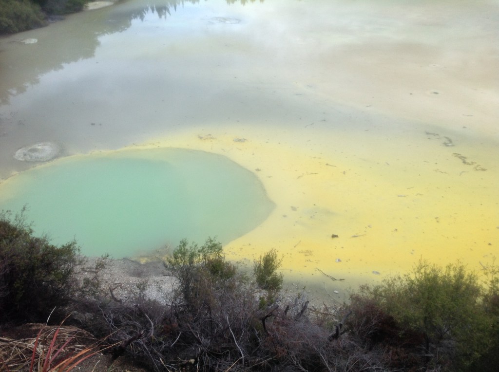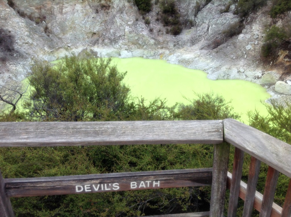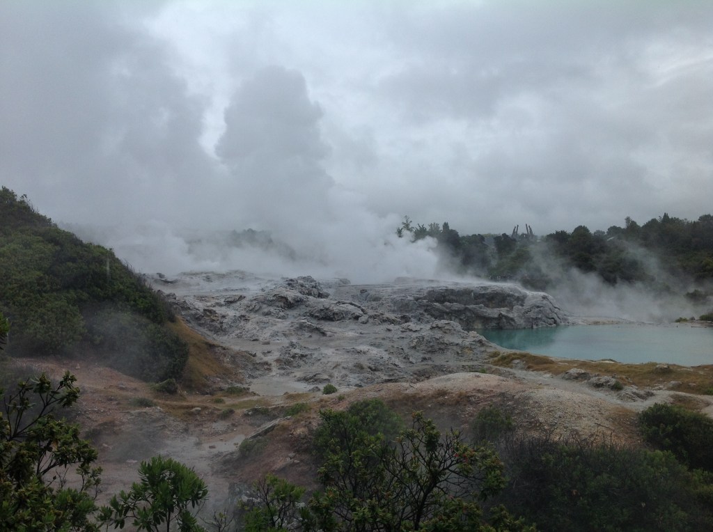 Rotorua je mesto, ki živi dobesedno na pokrovu kipečega lonca. Na vsakih nekaj deset metrov se iz zemeljskih por dviga para in pogosto vonj po žveplu. Zvečer, ko sva prišla v kamp, je bilo še lepo vreme in vonja ni bilo čutiti. Ponoči je začelo deževati in sem prevohal ves avto, kje nama je ostala kakšna pokvarjena hrana ali postana odpadna voda, preden sem se zavedel, za kaj pravzaprav gre.