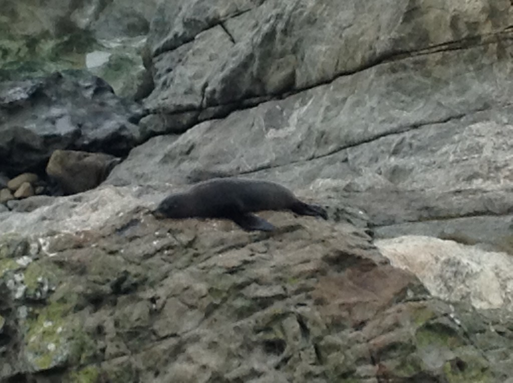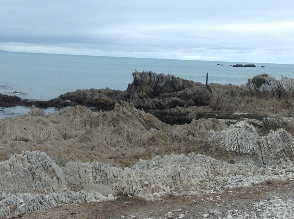 Na poti po Južnem otoku nama razen fjordlanda manjka še severovzhodna obala, ki je vinorodno najbolj znan del države. Da bi naredila celotno pentljo, nama zmanjkuje časa, sva se pa danes odpeljala do kraja Kaikoura, ki je precej visoko. Cesta od Christchurcha pelje nekaj časa po ravnini kakšnih deset kilometrov vzporedno z morjem, potem se vzpne v hribe, kjer imaš občutek, da si prišel na Pokljuko, a se kmalu znova spusti k morju. Zadnjih dvajset kilometrov pred Kaikouro je točno takih, kot bi se peljal po jadranski magistrali. Obala je pretežno sklanata, na plažicah pa so debele naplavine morske trave. Danes je bilo morje zelo krotko, brez velikih valov in vetra. Vreme je bilo še vedno oblačno, a sva ujela eno samo manjšo ploho. Napoved za naprej je še bolj obetavna.