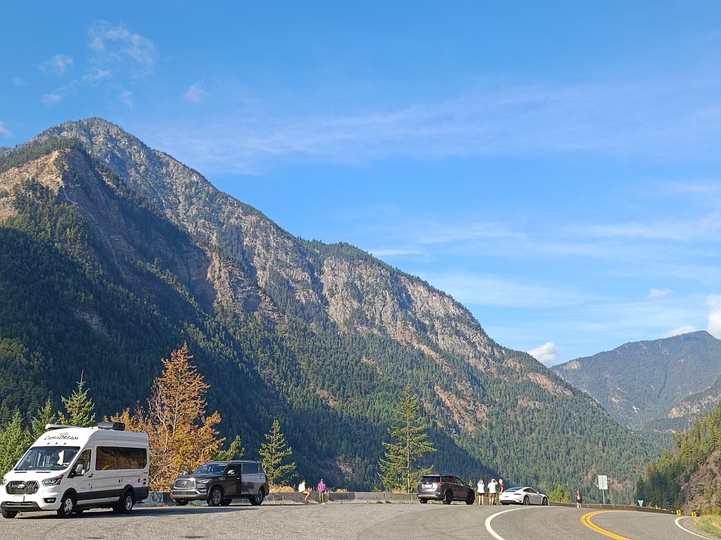 Predvčerajšnjim sva napravila najdaljši načrtovani skok tega potovanja, 480 kilometrsko pot od Whistlerja do provincialnega parka Wells Gray. Vozila sva se približno osem ur, saj so tu omejitve kar stroge. Tudi po avtocesti je najvišja dovoljena hitrost 110 km/uro, največkrat celo manj. Kot rečeno, ni primerljiva z našim pojmovanjem avtoceste, kjer so vedno štirje pasovi, pač pa je zlasti med hribi pogosto dvosmerni promet. A ceste so krasne in gladke in skoraj brez izjeme se vsi držijo zapovedane hitrosti. Avto ima prilagodljivi tempomat in program za vožnjo po klancu navzdol, kar je pri avtomatskem menjalniku koristna funkcija, vožnja je torej zelo udobna.