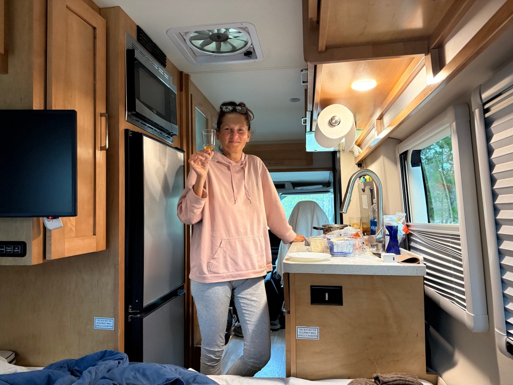 Pred potovanjem sem premišljeval, da bo septembra po koncu glavne sezone vse na pol prazno, a na isti način razmišljajo vsi, ki nimajo šoloobveznih otrok in so kampi skoraj nabito polni. Za nekaj najbolj obiskanih krajev sem kamp predhodno rezerviral, kar se je izkazalo za modro odločitev. Vedno opaziva tudi prostore, kjer avtodomi brezplačno prenočujejo, a imava nekako rada normalno stranišče in tuš. Če se usedem na stranišče v avtu, se mi zdi kot bi se zložil v nočno omarico.