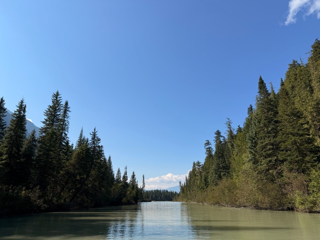 Današnji dan naj bi bil bolj lenoben pred odhodom v Jasper, a sva povsem nepričakovano doživela zanimivo izkušnjo. Šla sva na safari s čolnom po reki Blue z namenom občudovanja narave in divjadi. Ne bom okolišal, na obali približno sto metrov od čolna smo videli črnega medveda, kar je bilo vse od divjih živali, a je bil izlet vseeno lep zaradi naravnih lepot in adrenalinske vožnje z gliserjem po ozki rečni strugi. Z opazovanjem živali imava podobno izkušnjo že z Nove Zelandije, ko sva poskušala posneti pingvine in se je tik preden sva obupala ena sama žival kot maneken sprehodila gor in dol in izginila. Nič hudega, pravijo da je veliko možnosti videti medveda ali losa nekje ob cesti. Upam, da ne na cesti ali na havbi.
