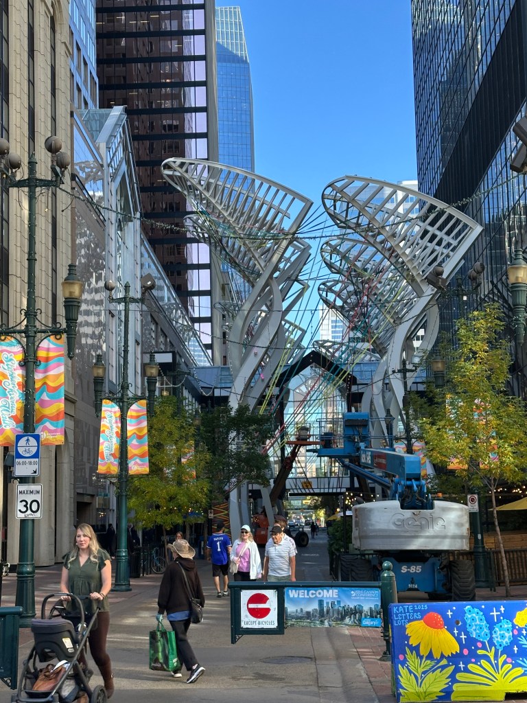Dan je bil znova neznansko topel, okoli 27 stopinj. Ob čakanju na zeleno luč na semaforju naju je ogovoril mladenič in naju vprašal, od kod sva in če sva prvič v Calgaryju. Kar nekako se je opravičil, da je mesto polno rekonstrukcij, češ da se jim prek poletja mudi zidati, ker je pozimi rado med -35 in -40 stopinjami. Bogme, meni je bilo mesto videti bolj pohlevno.